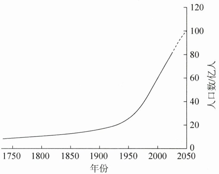 4.B 解析:人类有漫长的发展历史,见图中②线。18世纪以前,世界人口增长得相当缓慢,工业革命后世界人口进入迅速增长的时期。到2022年11月15日,世界人口总数已突破了80亿大关。目前,世界人口仍以较快的速度在持续增长。