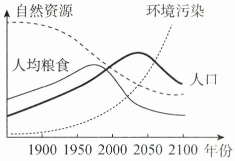 7.B 解析:读图可知,随着时间的变化,世界人口的数量先增后减,环境污染不断加重,人均粮食先增后减,自然资源数量持续减少。