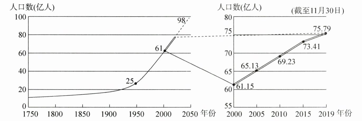 11. 读世界人口发展趋势图和资料,回答下列问题。