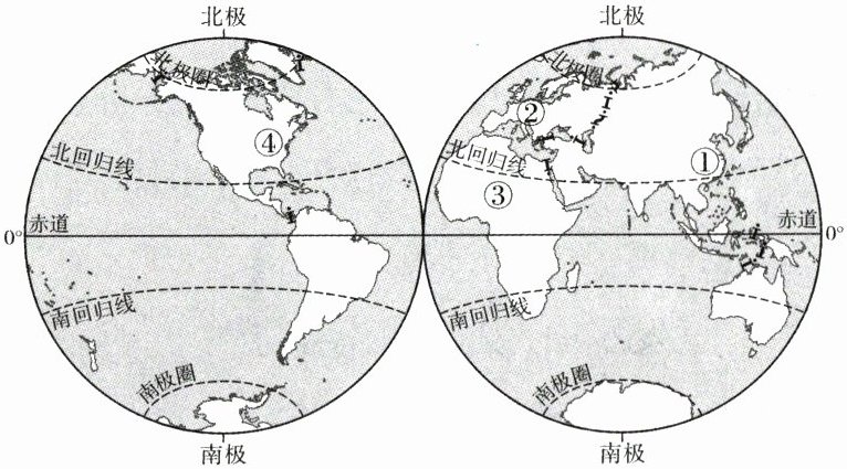 3. 下图①②③④四个地区中,人口最稀疏的是(