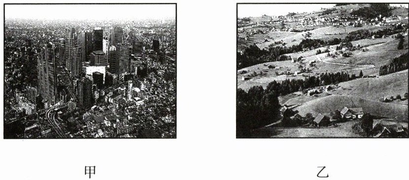 8.C 解析:在大城镇里,由于用地紧张,人们建造了许多高层住宅,这样可以提高城镇土地的利用率。乡村居民的居住地相对分散,规模比较小。乡村的外围通常分布着大片的农田。