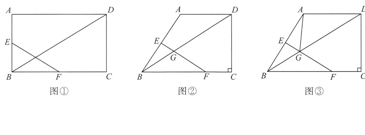 (2)【问题探究】如图②,在四边形$ABCD$中,$AD // BC$,$\angle BCD = 90°$,点$E$是$AB$的中点,点$F$在边$BC$上,$AD = 2CF$,$EF$与$BD$交于点$G$,求证$BG = FG$.