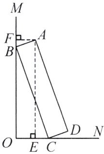 (杭州中考)如图,一块矩形木板 ABCD 斜靠在墙边(墙 OM 垂直于地面 ON,点 A,B,C,D,O 在同一平面内),已知$AB = a$,$AD = b$,$\angle BCO = x$,则点 A 到地面的距离等于(
