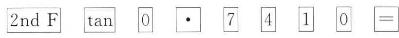 例2 已知 $\tan x = 0.741 0$,求锐角 $x$(结果精确到 $1'$).