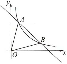 13.如图,一次函数$y = -x + 5$的图象与反比例函数$y = \frac{k}{x}(k \neq 0)$的图象在第一象限内交于$A(1,n)$和$B$两点.