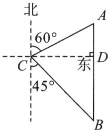(长沙中考)如图,一艘轮船从位于灯塔$C$的北偏东$60{°}$方向,距离灯塔$60 nmile$的小岛$A$出发,向正南方向航行一段时间后,到达位于灯塔$C$的南偏东$45{°}$方向的$B$处.这时轮船所在的$B$处与小岛$A$的距离是(