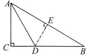 解:过点$D$作$DE \perp AB$于点$E$.$\because AD$平分$\angle BAC$,$\angle C = 90{°}$,$\therefore DE = CD = 2$.在$ Rt \bigtriangleup BDE$中,$\sin B = \frac{DE}{DB} = \frac{1}{2}$,$\therefore\angle B = 30{°}$. 在$ Rt \bigtriangleup ABC$中,$\cos B = \frac{CB}{AB}$,$\therefore AB = 4\sqrt{3}$.