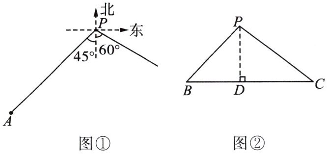 例1 如图①,小岛A在港口P的