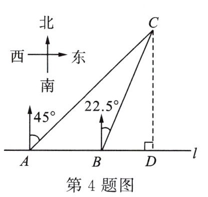 $A$测得船$C$在北偏东$45°$的方向,从观测站$B$测得船$C$在北偏东$22.5°$的方向,