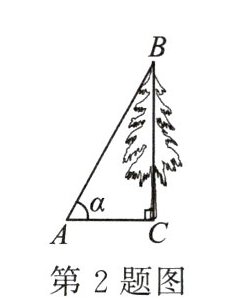 2. 如图,在地面上的点$A$处测得树顶$B$的仰角为$\angle \alpha$,$AC = 7$ m,则树高$BC$
