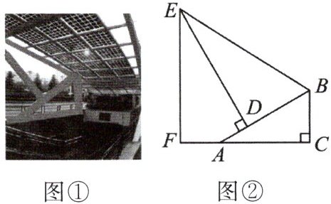 的知识测量侧面支架的最高点$E$到地面的距离$EF$,如图②.经测量,支架的立柱
