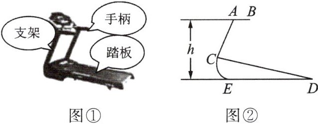 12.图①和图②分别是某种型号跑步机的实物图与示意图.已知踏板$CD$长