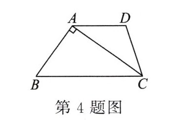 4.B 提示:$\because AD = CD$,$\therefore \angle DAC = \angle DCA$. 又$\because AD // BC$,$\therefore \angle DAC = \angle ACB$.$\therefore \angle DCA = \angle ACB$. 在 $ Rt \triangle ACB$ 中,$AC = BC · \cos \angle ACB = 10 × \frac{4}{5} = 8$,则 $AB = \sqrt{BC^2 - AC^2} = 6$.
