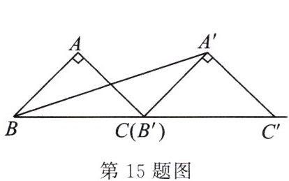 15.如图,将以$A$为直角顶点的等腰直角三角形$ABC$沿直线$BC$平移得到$\triangle A'B'C'$,使点$B'$与点$C$重合,连接$A'B$,则$\tan\angle A'BC'$的值是