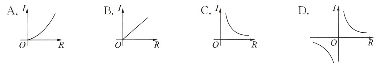 解析:当电压为定值时,由$I = \frac{U}{R}$知$I$与$R$之间的函数图象为双曲线,且根据实际意义,$I$,$R$均应大于$0$,其图象在第一象限.故选C.