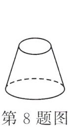 8. 如图,桌面上放置一个圆台,已知圆台的上底面积是下底面积的$\frac{1}{4}$,此时圆台对桌面的压强为$100\ Pa$.若把圆台翻过来放,则它对桌面的压强是