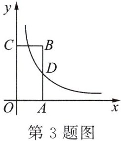 3.如图,反比例函数$y = \frac{2}{x}$的图象经过矩形$OABC$的边$AB$的中点$D$,则矩形$OABC$的面积为