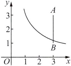 6.如图,已知点$A(3,3)$,$B(3,1)$,反比例函数$y = \frac{k}{x}(k \neq 0)$图象的一支与线段$AB$有交点,写出一个符合条件的$k$的数值: