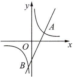 7.如图,一次函数$y = 2x - 4$的图象与反比例函数$y = \frac{k}{x}$的图象交于$A,B$两点,且点$A$的横坐标为$3$.