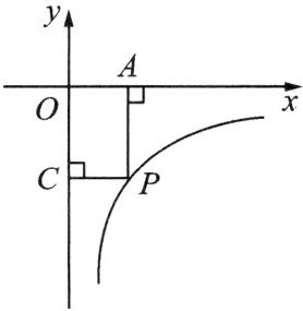 5.如图,点$P$是反比例函数$y = \frac {k} {x}$图象上一点,过点$P$分别作$x$轴、$y$轴的垂线,垂足分别为$A$,$C$.如果围成的矩形面积是$4$,那么此反比例函数的解析式是(