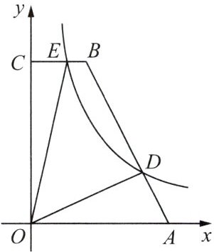 16.如图,在平面直角坐标系中,点$A$,$B$的坐标分别为$(5,0)$,$(2,6)$,过点$B$作$BC // x$轴交$y$轴于点$C$,点$D$为线段$AB$上的一点,且$BD = 2AD$.反比例函数$y = \frac {k} {x}(x > 0)$的图象经过点$D$交线段$BC$于点$E$,则四边形$ODBE$的面积是