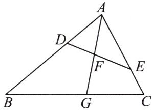 5.如图,在$\triangle ABC$中,点$D$,$E$分别在边$AB$,$AC$上,$\angle AED=\angle B$,射线$AG$分别交线段$DE$,$BC$于点$F$,$G$,且$\frac{AD}{AC}=\frac{DF}{CG}$.