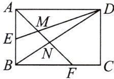 7.如图,矩形$ABCD$的边长$AD=3$,$AB=2$,点$E$为$AB$的中点,$F$在边$BC$上,且$BF=2FC$,$AF$分别与$DE$,$DB$相交于点$M$,$N$,则$MN$的长为(