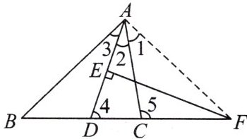$AD$的垂直平分线交$AD$于点$E$,交$BC$的延长线于点$F$.