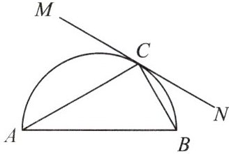 1. 如图,已知直线$MN$与以$AB$为直径的半圆相切于点$C$,在$MN$上是否存在点$D$,使$AB · CD = AC · BC$?下列说法中正确的是(