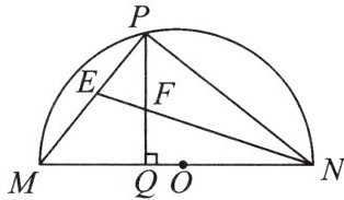 8. 如图,点$P$在以$MN$为直径的半圆上运动(点$P$与点$M$,$N$不重合),$PQ \perp MN$于点$Q$,$NE$平分$\angle MNP$,交$PM$于点$E$,交$PQ$于点$F$.