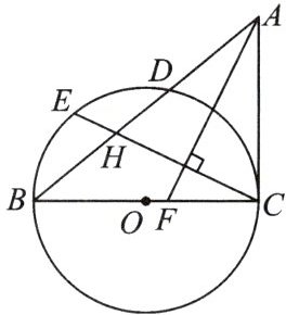 7. 如图,在$\triangle ABC$中,以边$BC$为直径的$\odot O$与边$AB$交于点$D$,点$E$为劣弧$\overset{\frown}{BD}$的中点,$AF$为$\triangle ABC$的角平分线,且$AF \perp EC$.