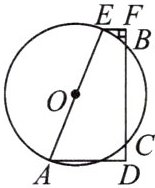 1. 如图,在梯形$AEFD$中,$EF// AD$,$\angle F = 90^{\circ}$,以$AE$为直径的$\odot O$交$FD$于点$B$,$C$,若$AD = 3$,$BC = 4$,$CD = 1$,求$AE$的长.