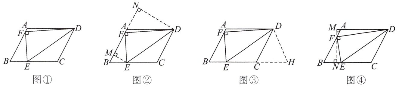 (重庆中考)如图①,在$□ ABCD$中,$AB = 6$,$AD = 8$,$\angle DEF = \angle B = 60^{\circ}$,$\angle EFD = 90^{\circ}$,求$AF$的长.