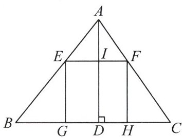 8. 如图,$\bigtriangleup ABC$是一块锐角三角形余料,边$BC = 120cm$,高$AD = 80cm$.要把它加工成正方形零件,使正方形的一边在$BC$上,其余两个顶点分别在$AB$,$AC$上,这个正方形零件的边长是多少?