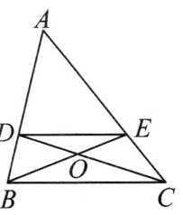 10. 如图,$DE// BC$,$CD$和$BE$相交于点$O$,$S_{\bigtriangleup DOE}:S_{\bigtriangleup COB} = 4:9$,则$AE$与$EC$的比为(
