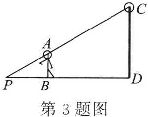 3.如图,某同学身高 $AB = 1.6 m$,他从路灯杆底部的点 $D$ 直行 $4 m$ 到点 $B$,