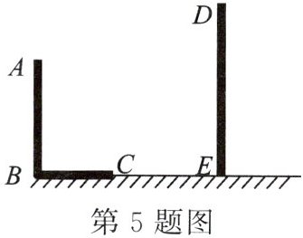 5.如图,$AB$ 和 $DE$ 是直立在地面上的两根立柱,$AB = 5 m$,某一时刻 $AB$ 在
