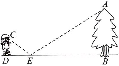 睛距离地面的高度 $CD = 1.6 m$.求树 $AB$ 的高度.