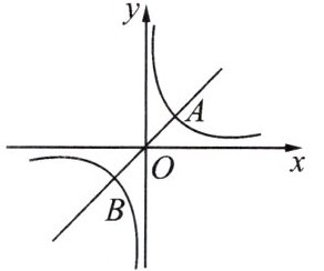 (绵阳中考)如图,反比例函数$y = \frac{k}{x}(k > 0)$与正比例函数$y = ax$相交于$A(1,k)$,$B(-k, -1)$两点.