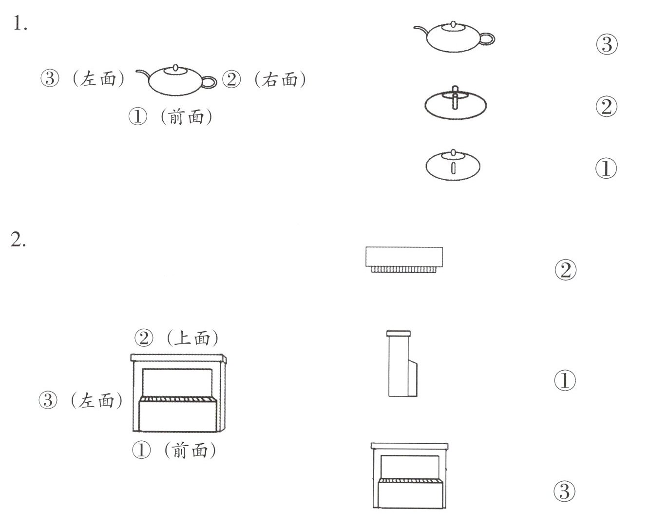 一、下面各幅图分别是从哪个位置看到的?连一连。