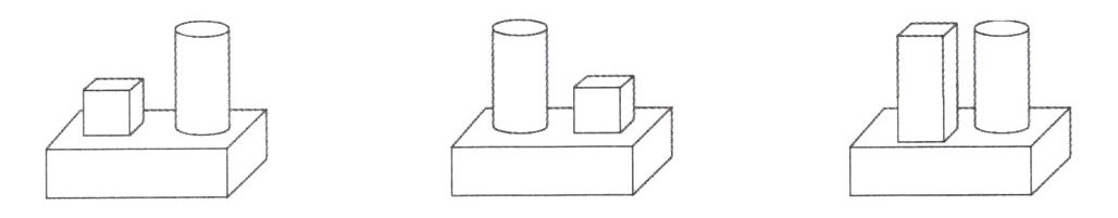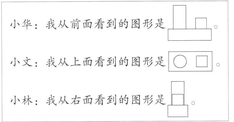 提示:根据三名同学看到的图形,可用排除法排除错误答案,特别注意小林是从右面观察,和从左面观察到的图形的遮挡关系不同。
