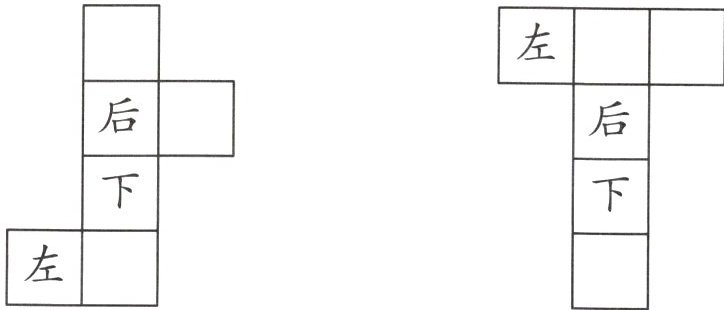第一个展开图:右,上,前。第二个展开图:上,前,右。