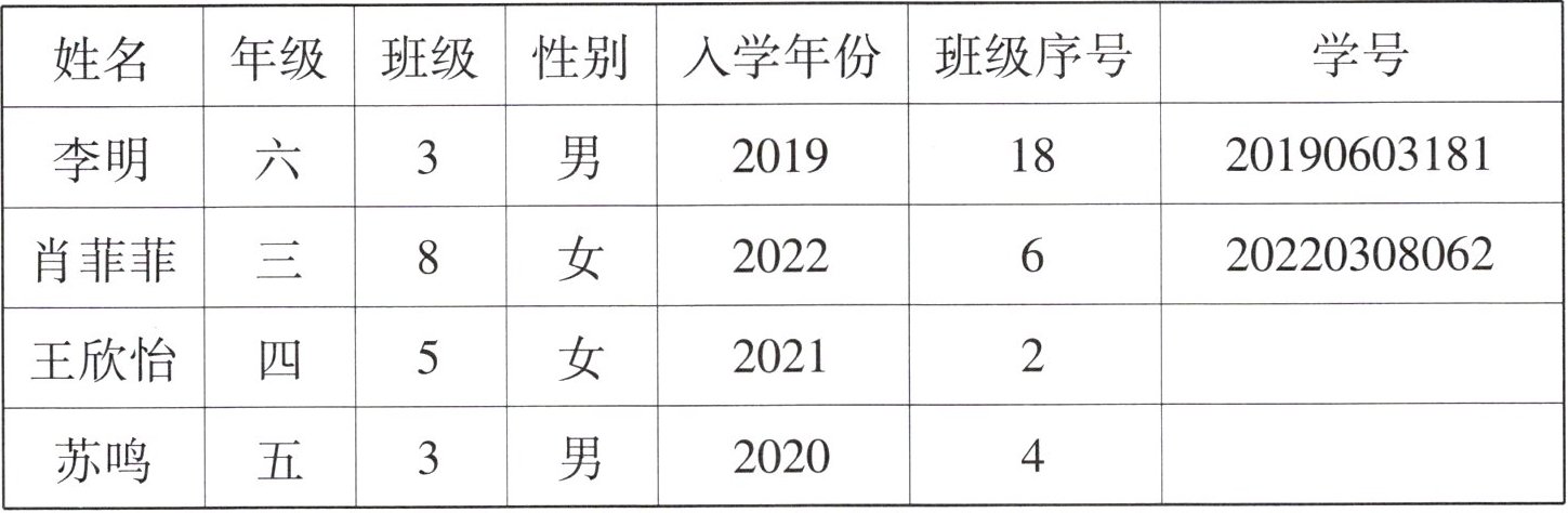 例如:2022103051 表示 2022 年入学的一年级(假设此处全校为小学到初中但示例简化为小学情况,实际可调整)三班5号学生(前面的2022为入学年份,1为一年级,03为三班,05为序号5,序号不足两位的前面补0)。
