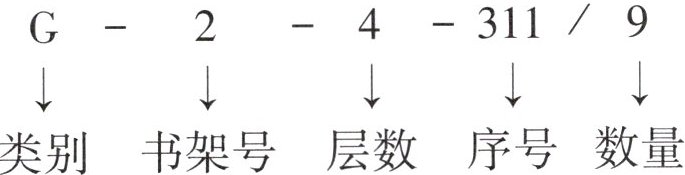 G - 2 - 4 - 311/9 表示这些书是文学类书籍,位置在 2 号书架的第 4 层,序号为 311,这套书共有 9 本。