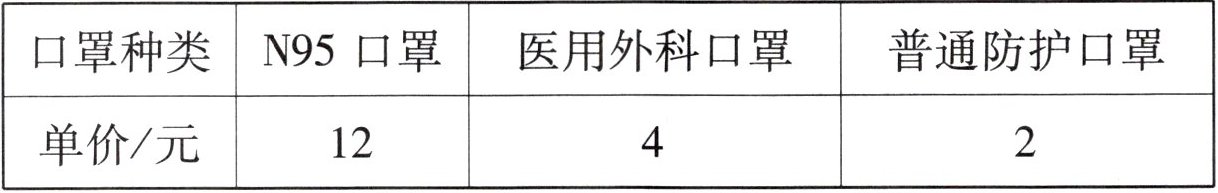 2. 下表是某药店几种口罩的售价。