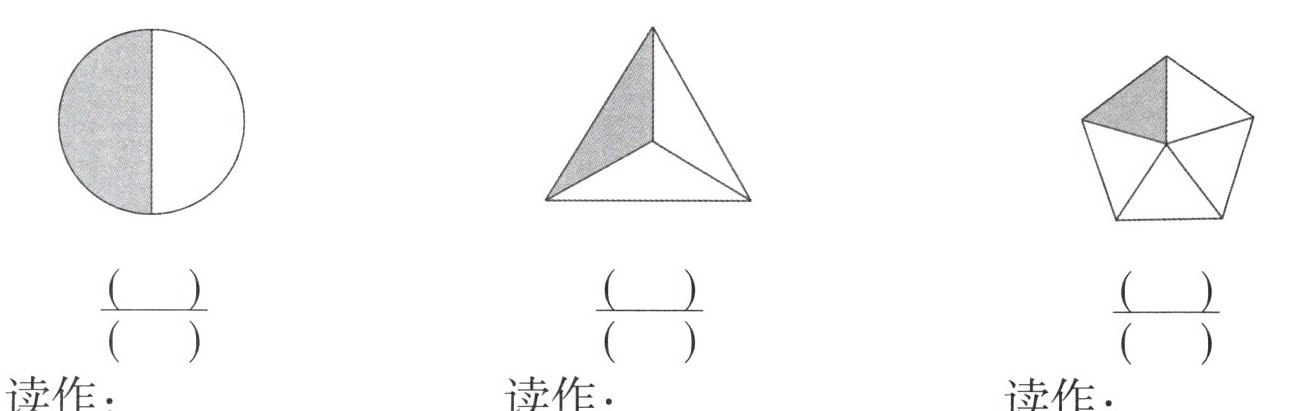二、用分数表示各图中的涂色部分,并读一读。