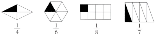 )}$。2. 把一个正方形平均分成 4 份,每份是它的$\dfrac{(