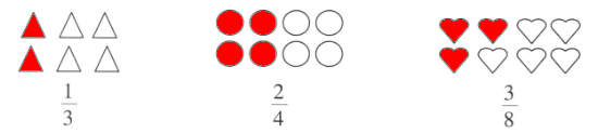 一、先分一分,再根据下面的分数涂上你喜欢的颜色。