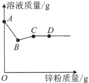 10. 将一定质量的锌粉加入 $Al(NO_3)_3$、$Cu(NO_3)_2$、$AgNO_3$ 三种物质的混合溶液中,溶液质量与加入锌粉的质量关系如图所示。$D$ 点时溶液中溶质为