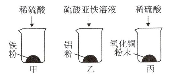 )。A.实验甲、乙、丙能证明铝、铁、铜金属活动性顺序:$Al > Fe > Cu$
